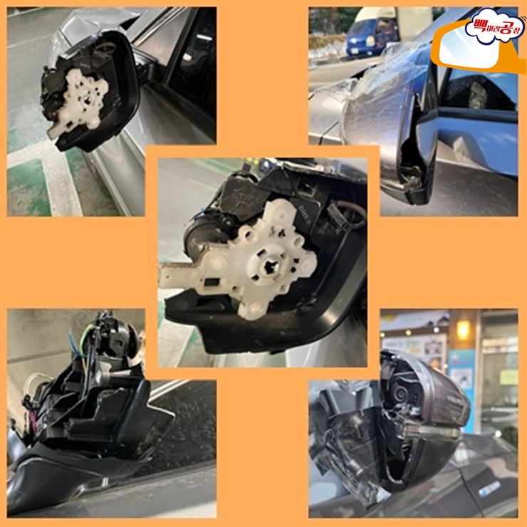 커버나 거울을 상하좌우로 움직이게 하는 모터등 깨지고 고장난 부품들만 수리하면 비용도 싸고, 수리도 빨리 될텐데....