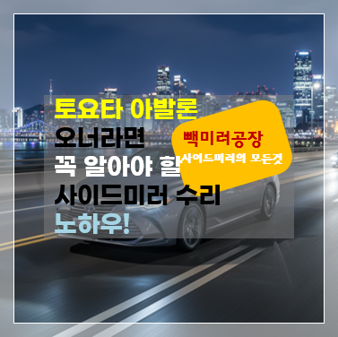 정식 서비스센터에서는 통째로 교체해야 한다고 해서 수십만 원의 비용을 요구하기도 합니다. 하지만 걱정하지 마세요! 오늘은 토요타 아발론 오너분들을 위해 사이드미러 수리 노하우와 함께 비용과 시간을 획기적으로 절약할 수 있는 방법을 알려드릴게요.