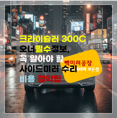 안녕하세요, 수입차 사이드미러 수리 전문 빽미러공장입니다. 😊 웅장한 디자인과 도로 위 존재감으로 많은 사랑을 받는 크라이슬러 300C 오너 여러분, 혹시 갑작스러운 사이드미러 고장으로 당황하신 적 있으신가요? 😥