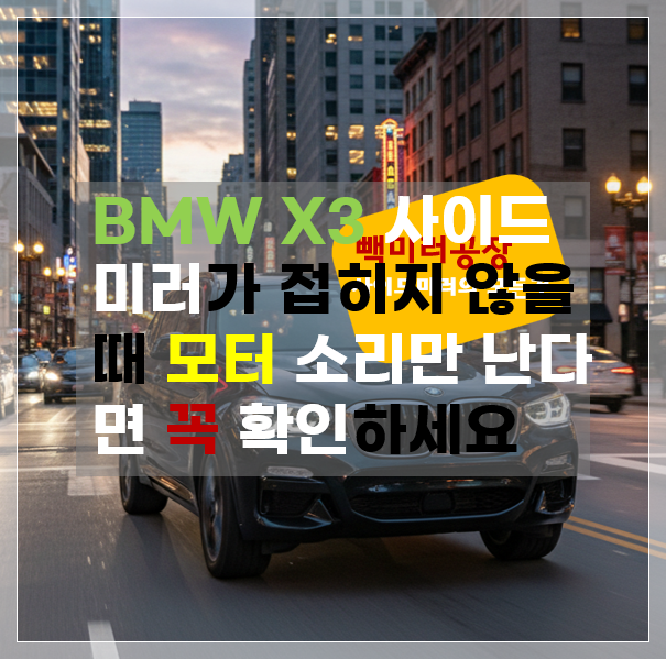 안녕하세요, BMW X3 오너 드라이버 여러분! 수입차 사이드미러 수리 전문, 빽미러공장입니다. 🚗💨