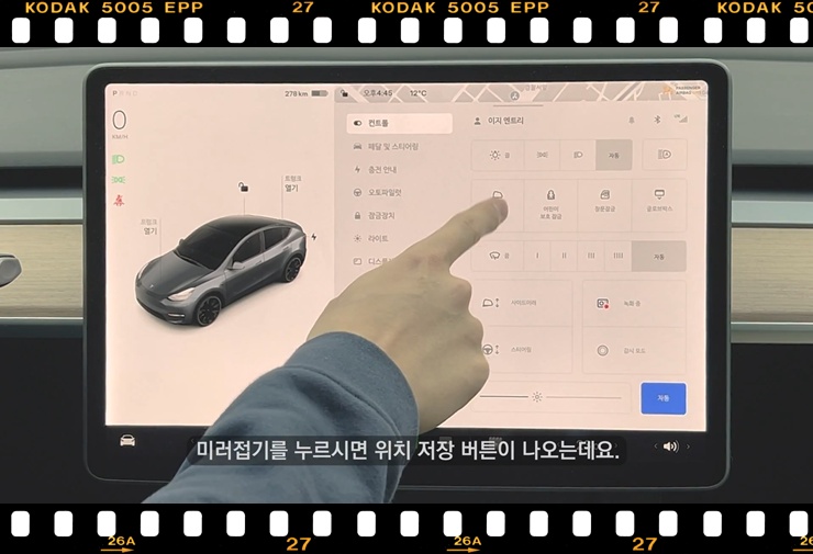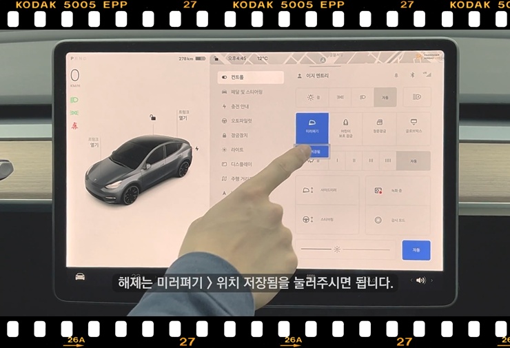 모델3(2024+)의 외부 사이드미러는 아래 순서로 조정합니다.