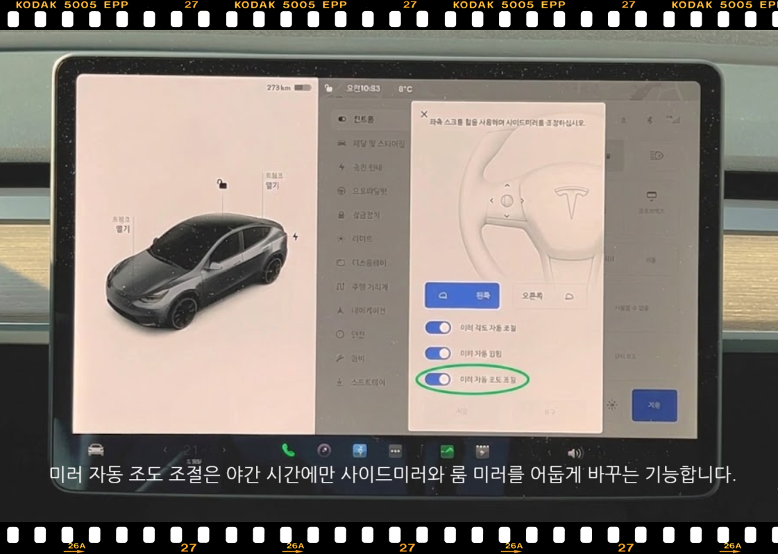 - 설정: 컨트롤 → 사이드미러 → '미러 자동 조도 조절'
