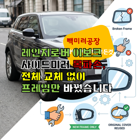 - 레인지로버 스포츠 사이드미러 수리, 빽미러공장에서 6개월 보증으로 안전하게