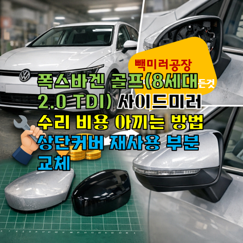 폭스바겐 골프 8세대 사이드미러 수리, 무조건 비싸게 할 필요 없습니다. 🙅