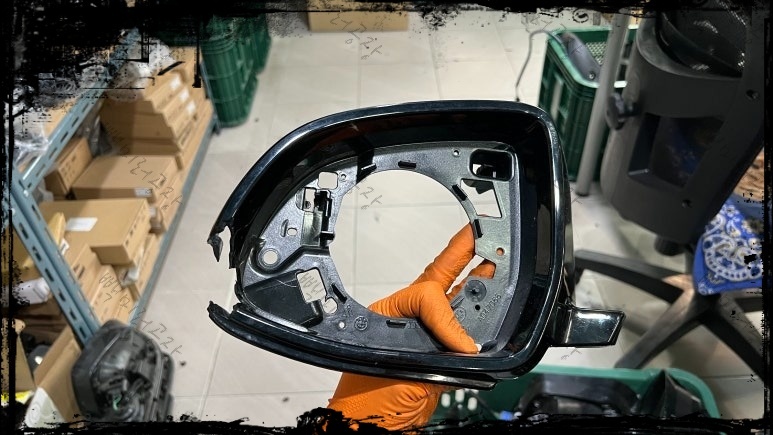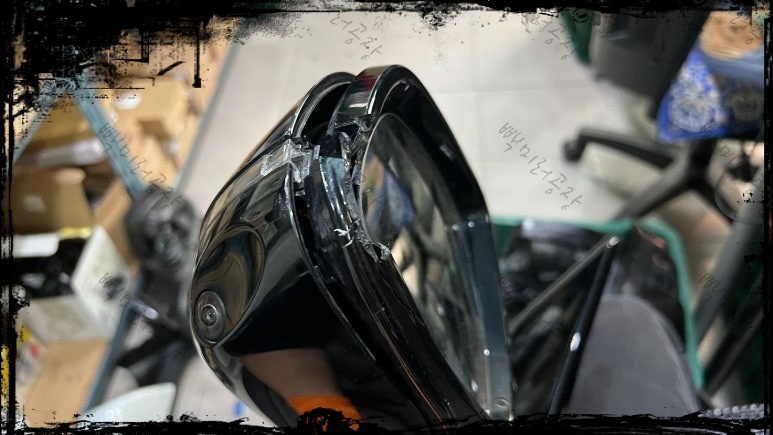 - 프레임 파손: 강한 충격으로 인해 사이드미러 내부의 핵심 지지대(프레임) 자체가 깨지거나 금이 간 경우