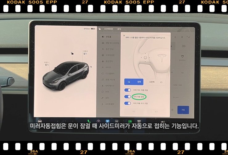 - 하차 후 잠글 때마다 자동 접힘: 컨트롤 → 미러 → '미러 자동 접힘' ON