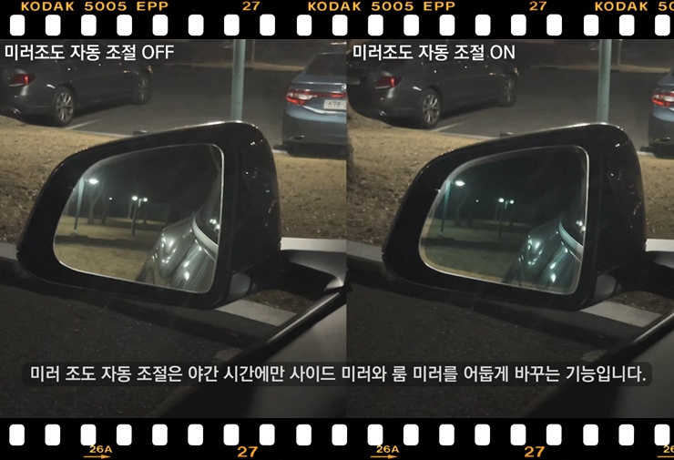 - 설정: 컨트롤 → 사이드미러 → '미러 자동 조도 조절'