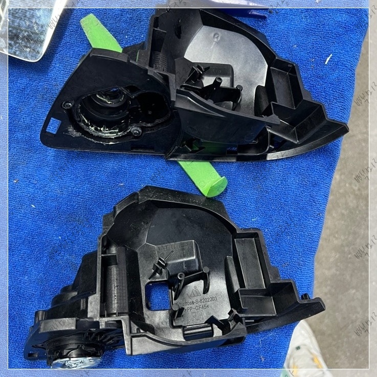 빽미러공장이 선택한 방법은 내부 프레임(뼈대) 통째 교체입니다. 기어 파손의 근본 원인은 결국 프레임 내부의 지지 구조 손상에 있기 때문입니다. 프레임을 신품급으로 교체하면 기어, 모터, 고정 구조가 모두 정상 상태로 돌아와 재고장 걱정이 없어집니다.
