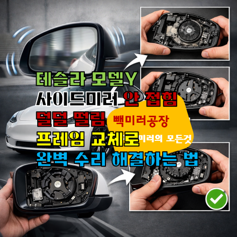 테슬라 모델Y 사이드미러 안 접힘·덜덜 떨림, 프레임 교체로 완벽 수리 해결하는 법