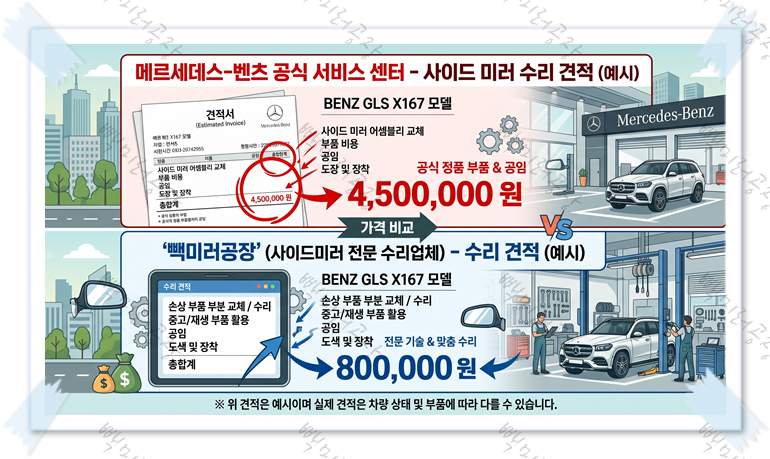 벤츠 GLS 사이드미러 수리, 서비스센터 말고 이렇게 하세요 빽미러공장 완벽 가이드